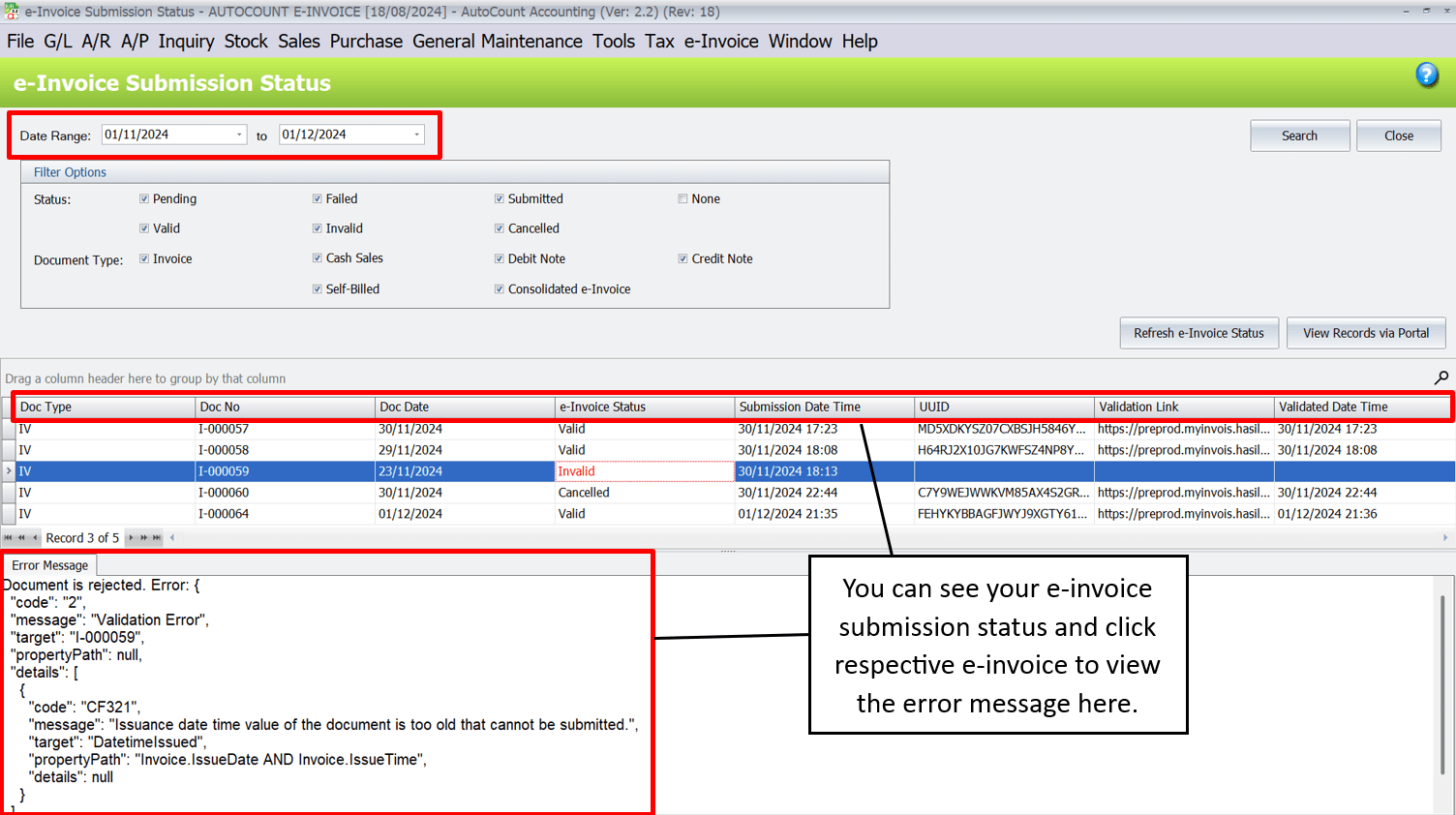 - For e-invoice, you can register AutoCount as an intermediary in MyInvois, generate secret keys and link API for automated submission, enabling seamless data flow without manual uploads.
