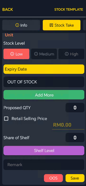 When stock runs low or is unavailable, merchandisers tap the “Out of Stock” button. This triggers an immediate notification to management.