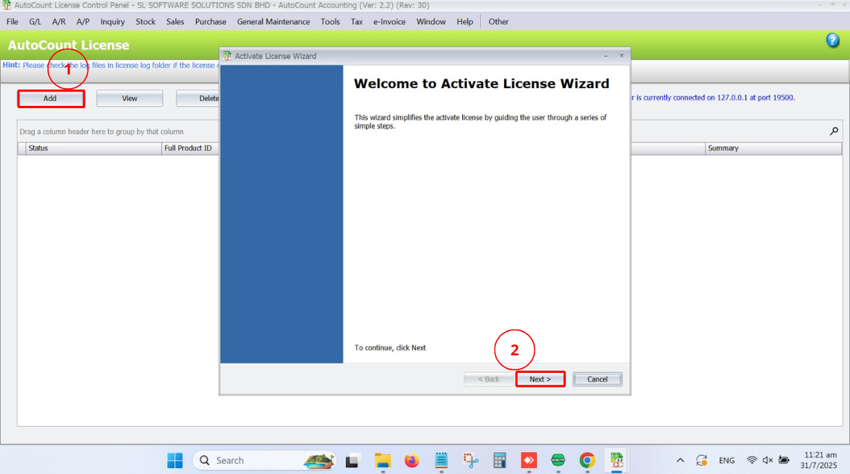 Setting up the AutoCount License is a crucial step in ensuring that your AutoCount Accounting software functions correctly. In this guide, we’ll walk you through the steps to add and configure your AutoCount license, including entering product details and connecting to the server.