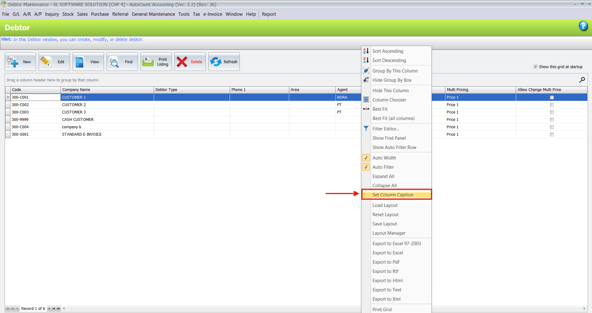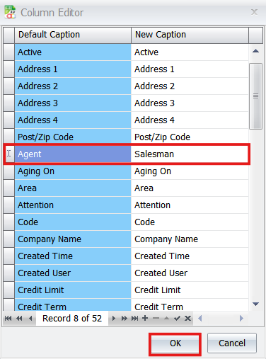 - Setting Column Captions: If you need to rename a column header (e.g., changing “Agent” to “Salesman”), you can use the “Set Column Caption” feature.