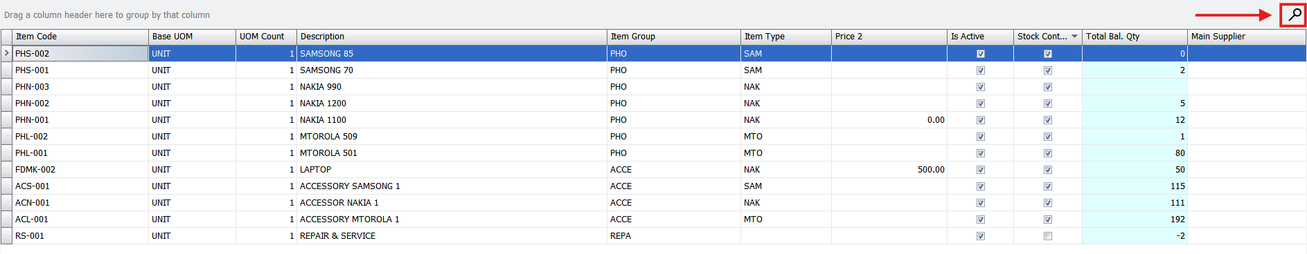 Navigate to any table-based module, for example Stock Items.