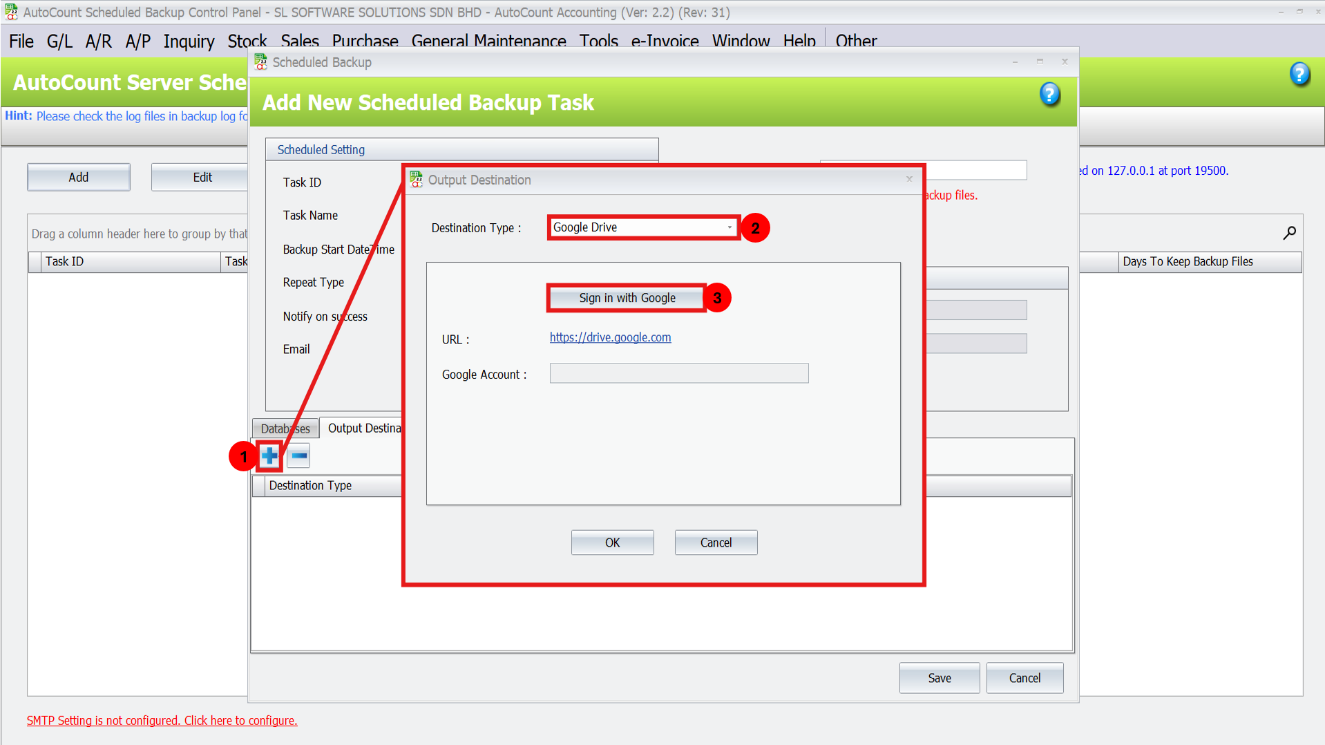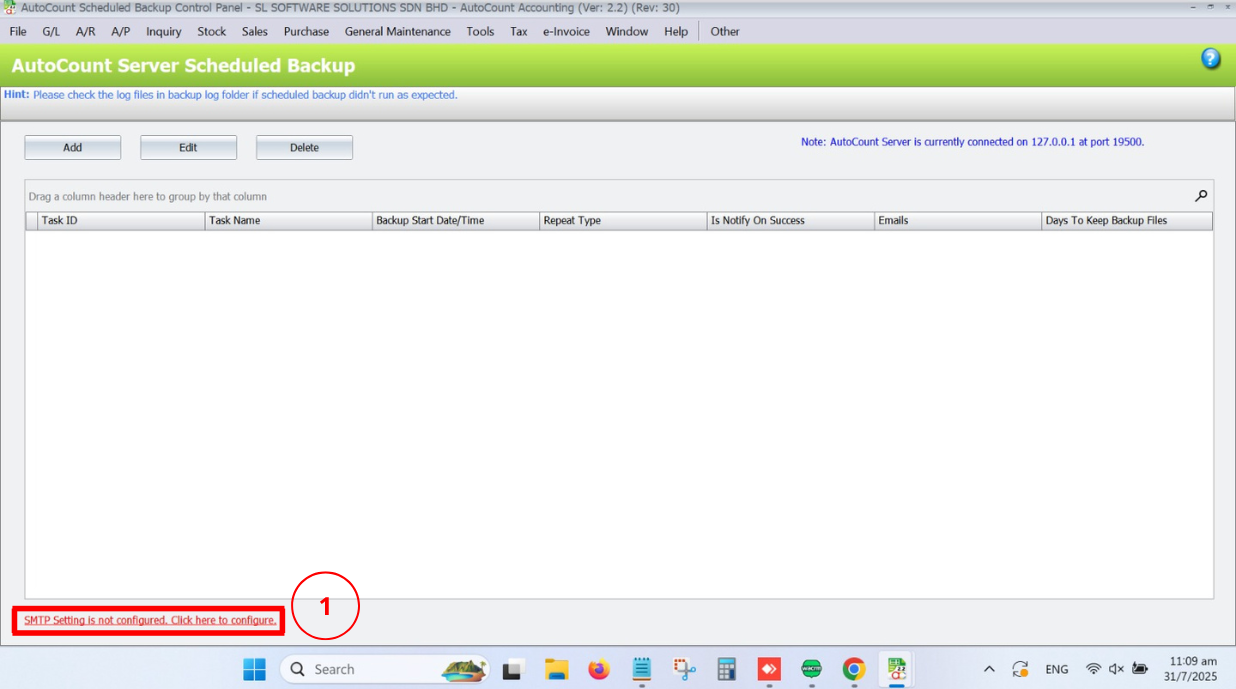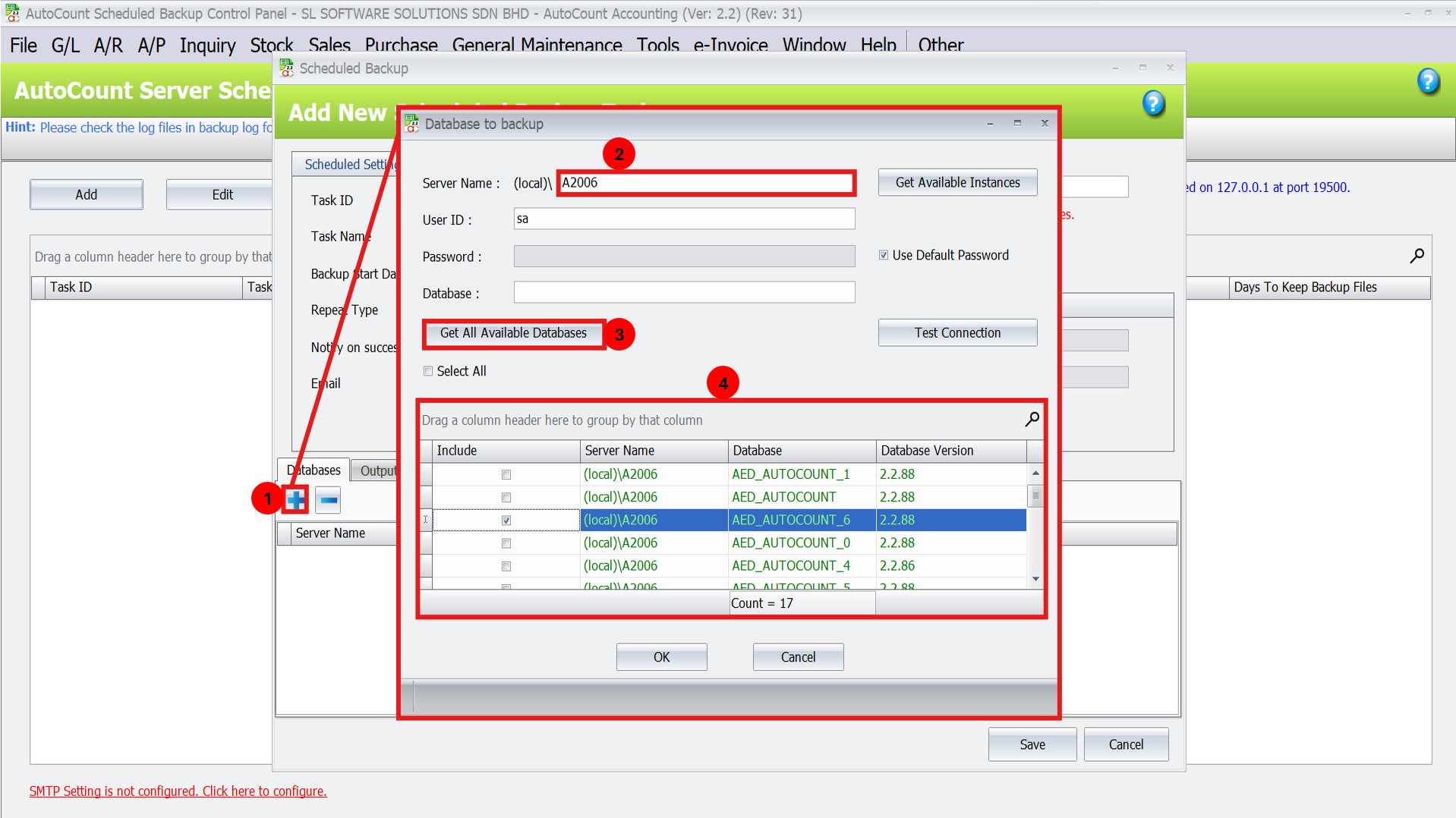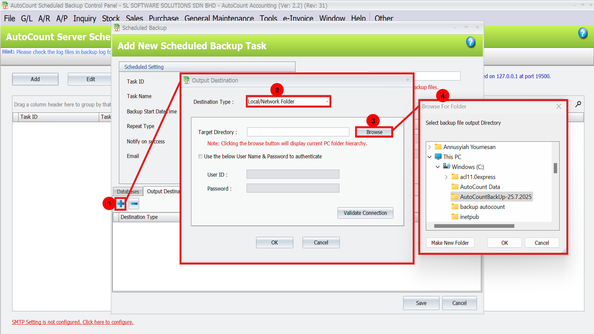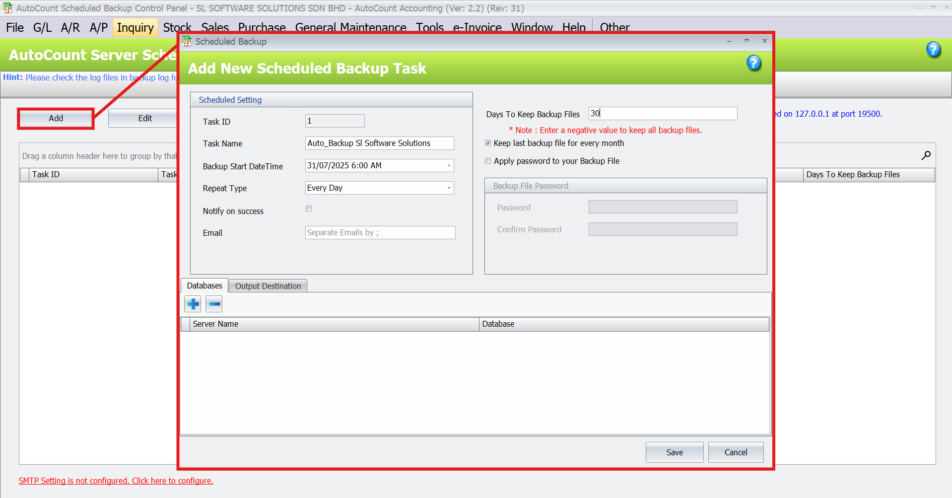 Setting up the AutoCount Scheduled Backup Server is straightforward. Here’s how to get started:
