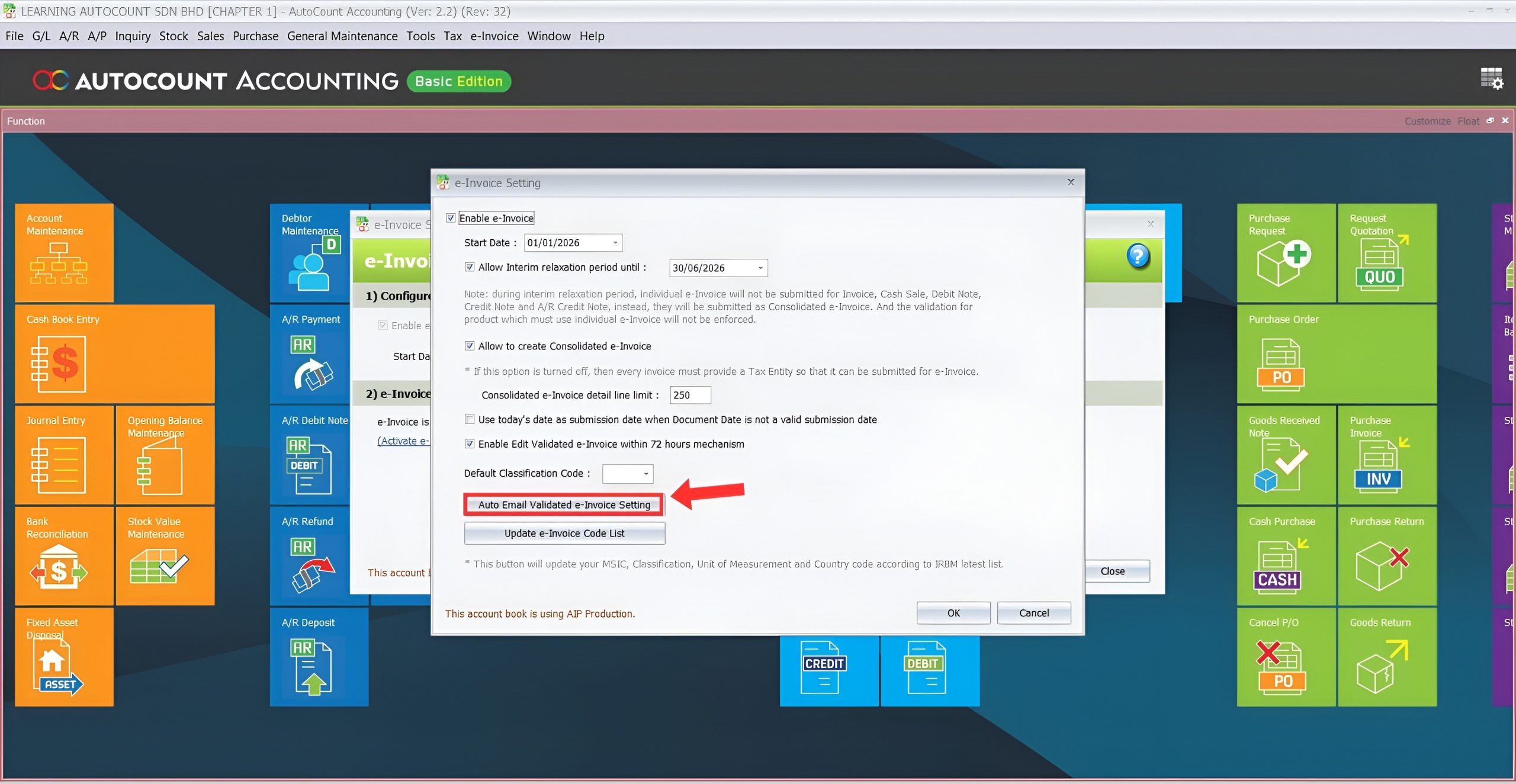 AutoCount E-Invoice feature: