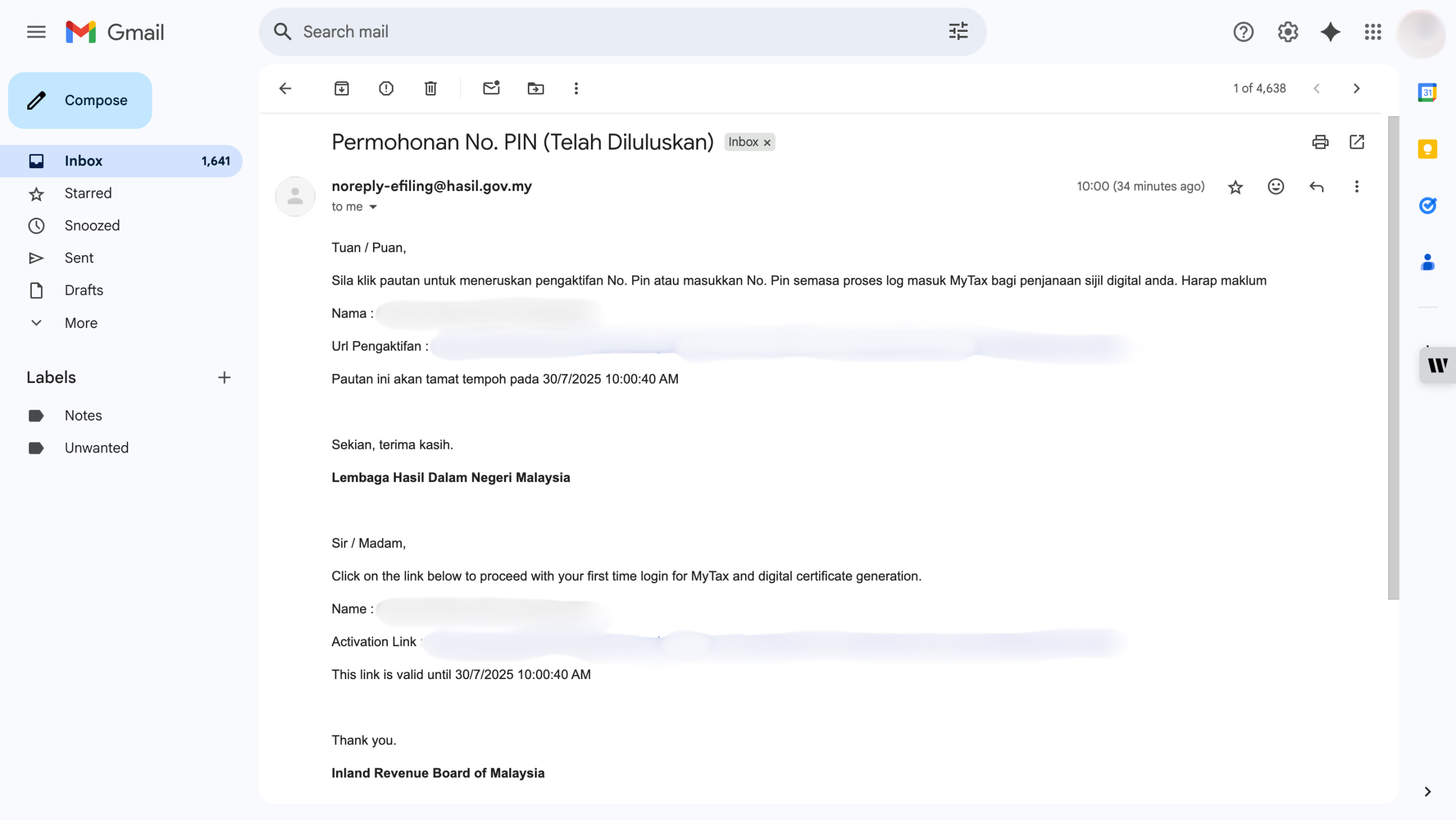 - Upon clicking the activation link, it will prompt you to MyTax Portal.