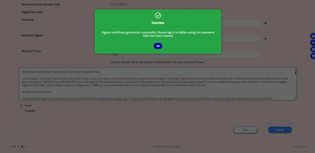 You should see a success message. Click “OK” and your MyTax registration is complete.