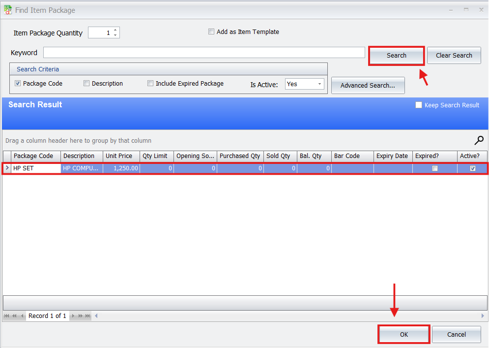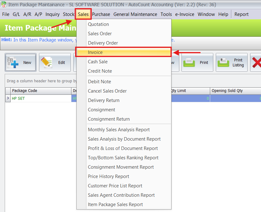 - Go to Stock > Item Package Maintenance.