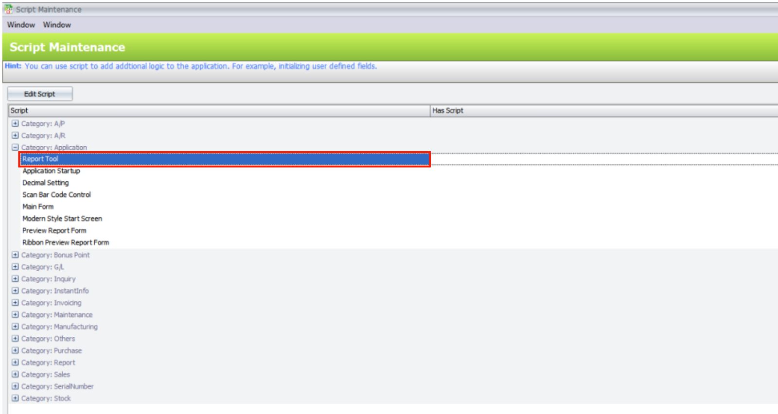 Add / Maintain Scripting