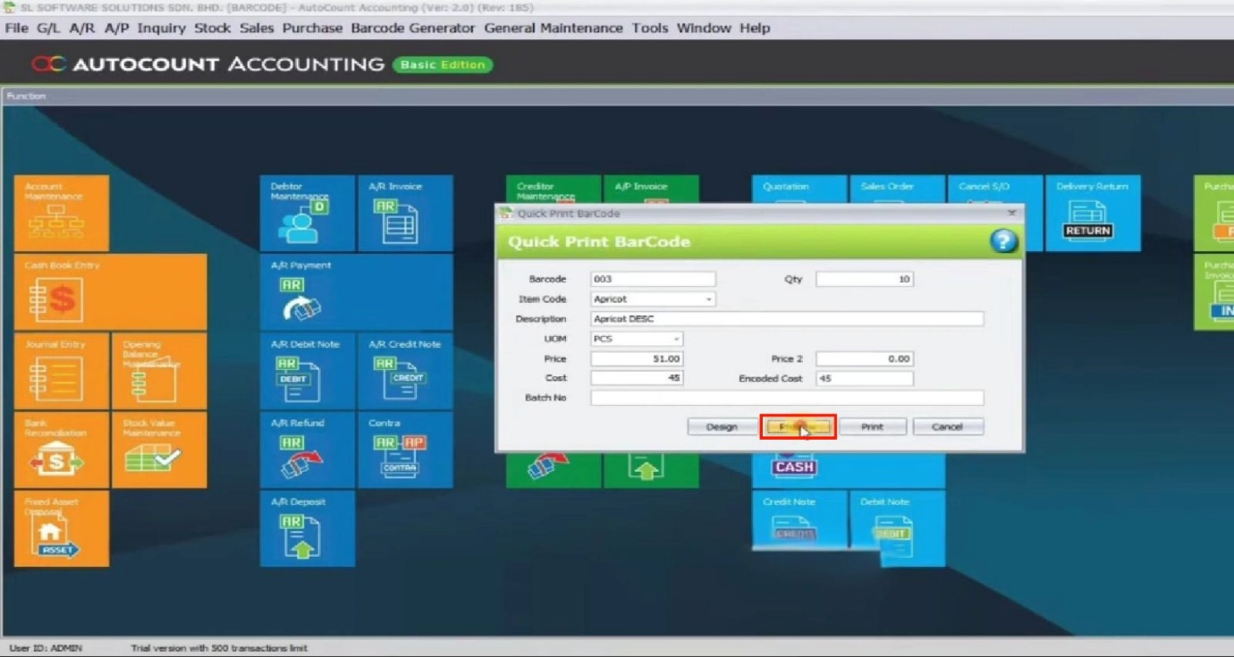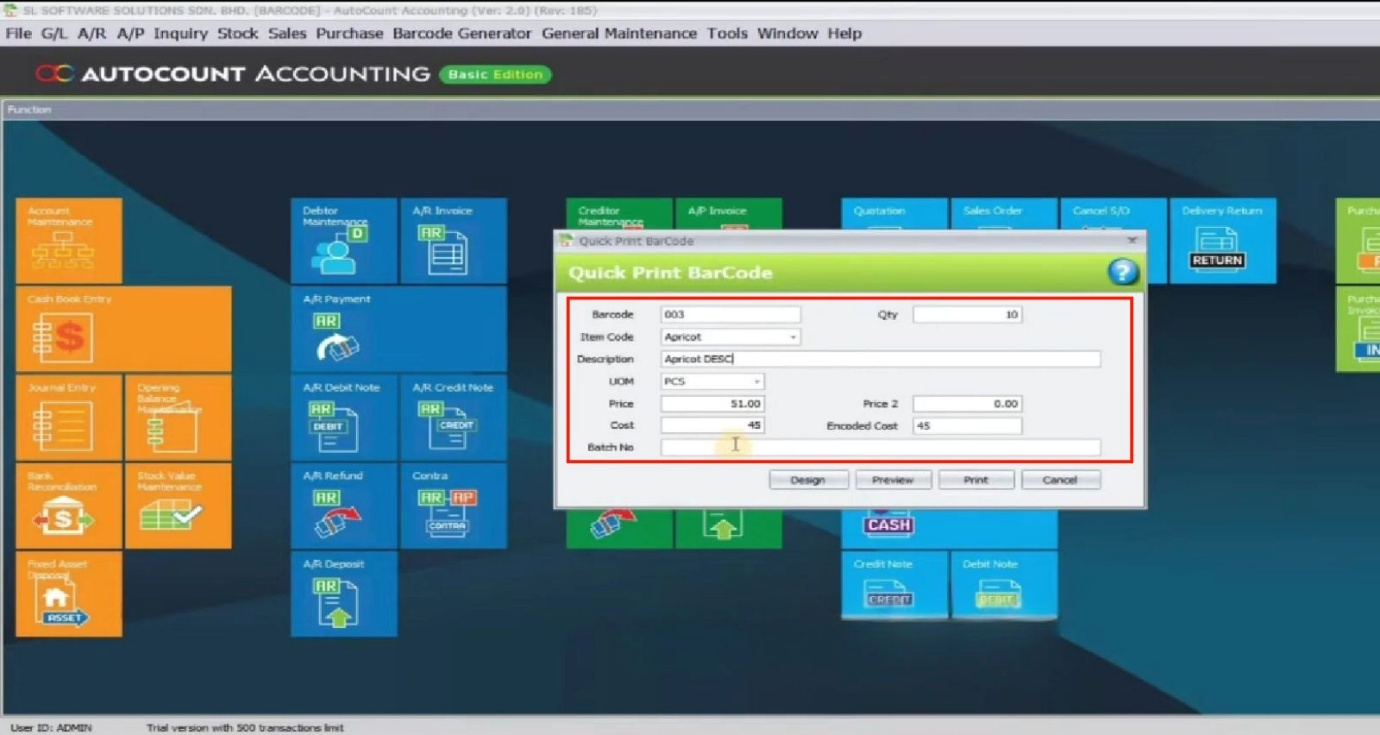 AutoCount Plugin: Barcode Generator Plugin User Guide