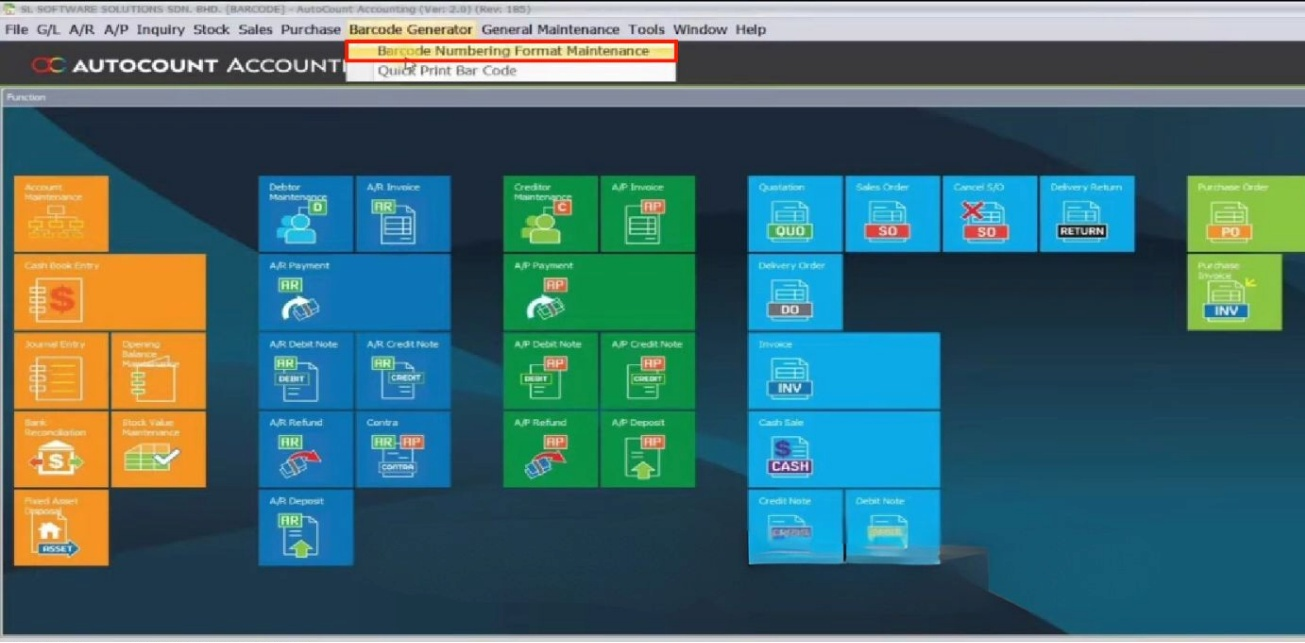 - Go to Barcode > Barcode Numbering Format Maintenance.