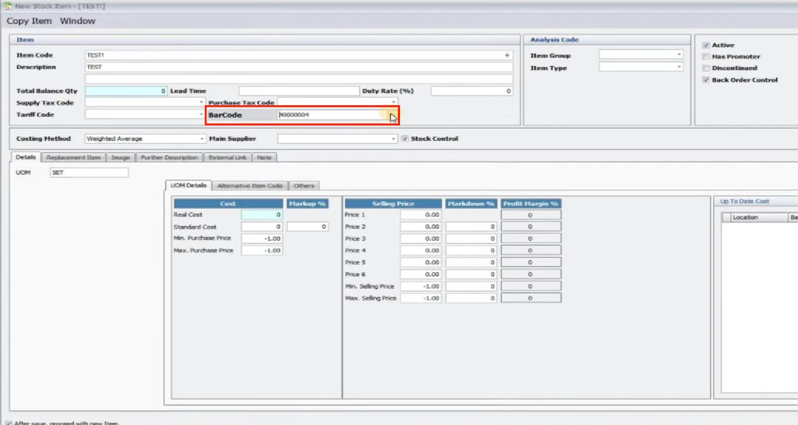 4.0 Add Barcode Number to Item