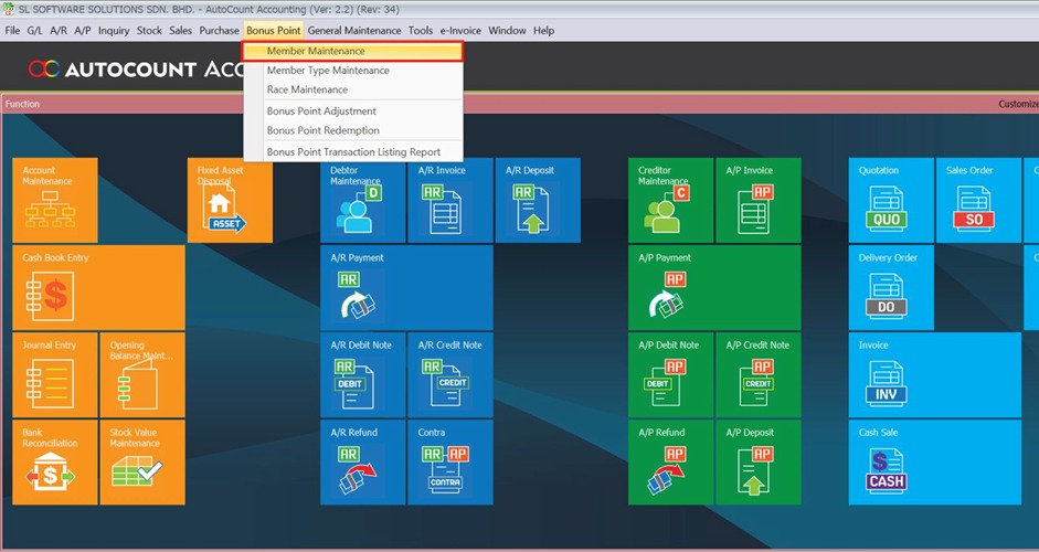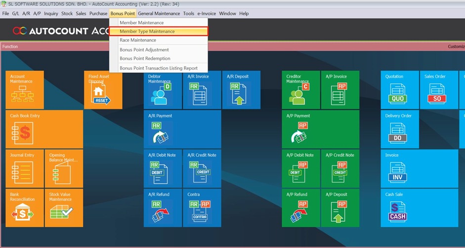 A built in loyalty rewards system that integrates with both AutoCount POS and AutoCount Accounting. It tracks customer points earned from purchases, forms rules for how points are calculated, and lets members redeem points for goods or discounts during sales or invoice processing.