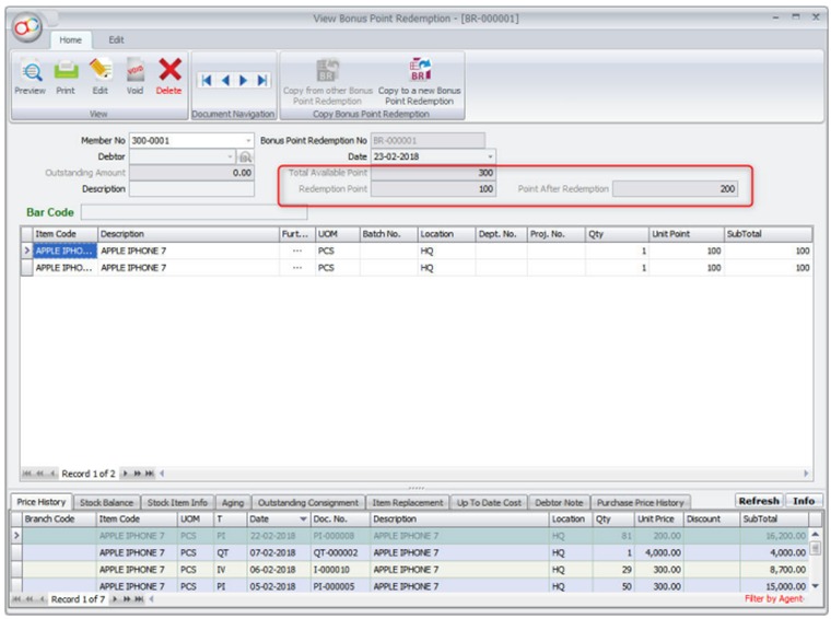 - Observe Total Available Points, Redemption Points, and Points After Redemption.