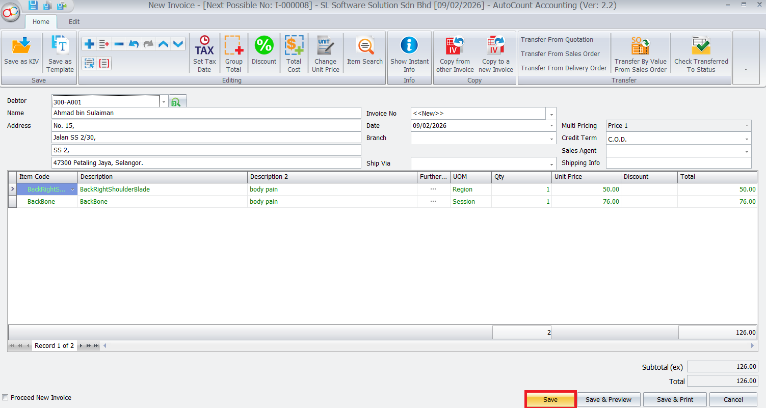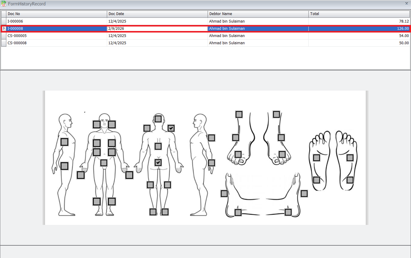 The AutoCount Pain Tracker Plugin is designed to help businesses in healthcare, therapy, wellness, and beauty industries track customer pain conditions and treatment progress directly within AutoCount. This makes it easier to maintain structured treatment records and monitor improvement over time.This plugin is especially useful for businesses such as Traditional Chinese Medicine (TCM) centers, Physiotherapy clinics, Massage therapy centers, Beauty and wellness providers. It ensures treatment records remain organized, consistent, and easy to reference.