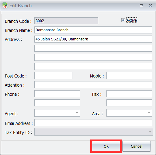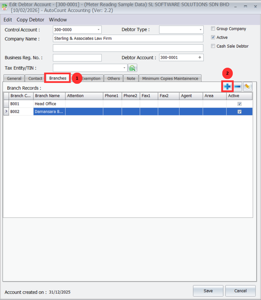 Select the Debtor and the correct Branch from the dropdowns.