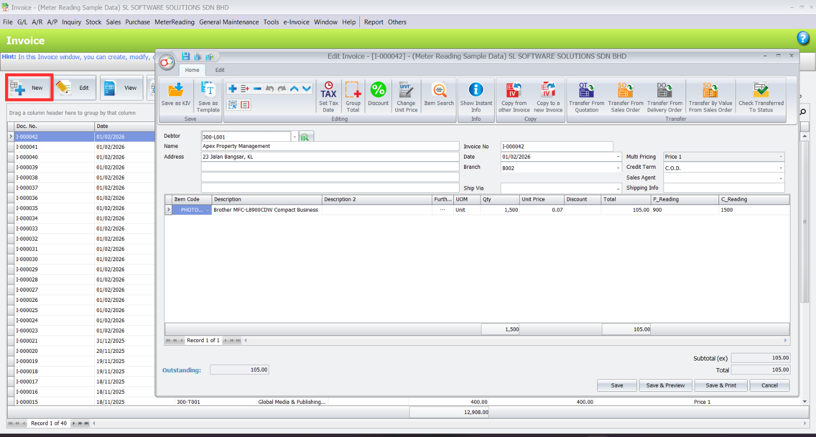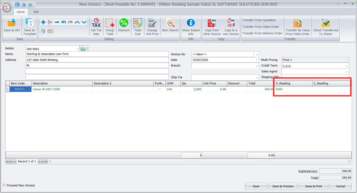 Absolutely. The meter reading functionality is fully available in both Invoice and Cash Sales transaction types within AutoCount.