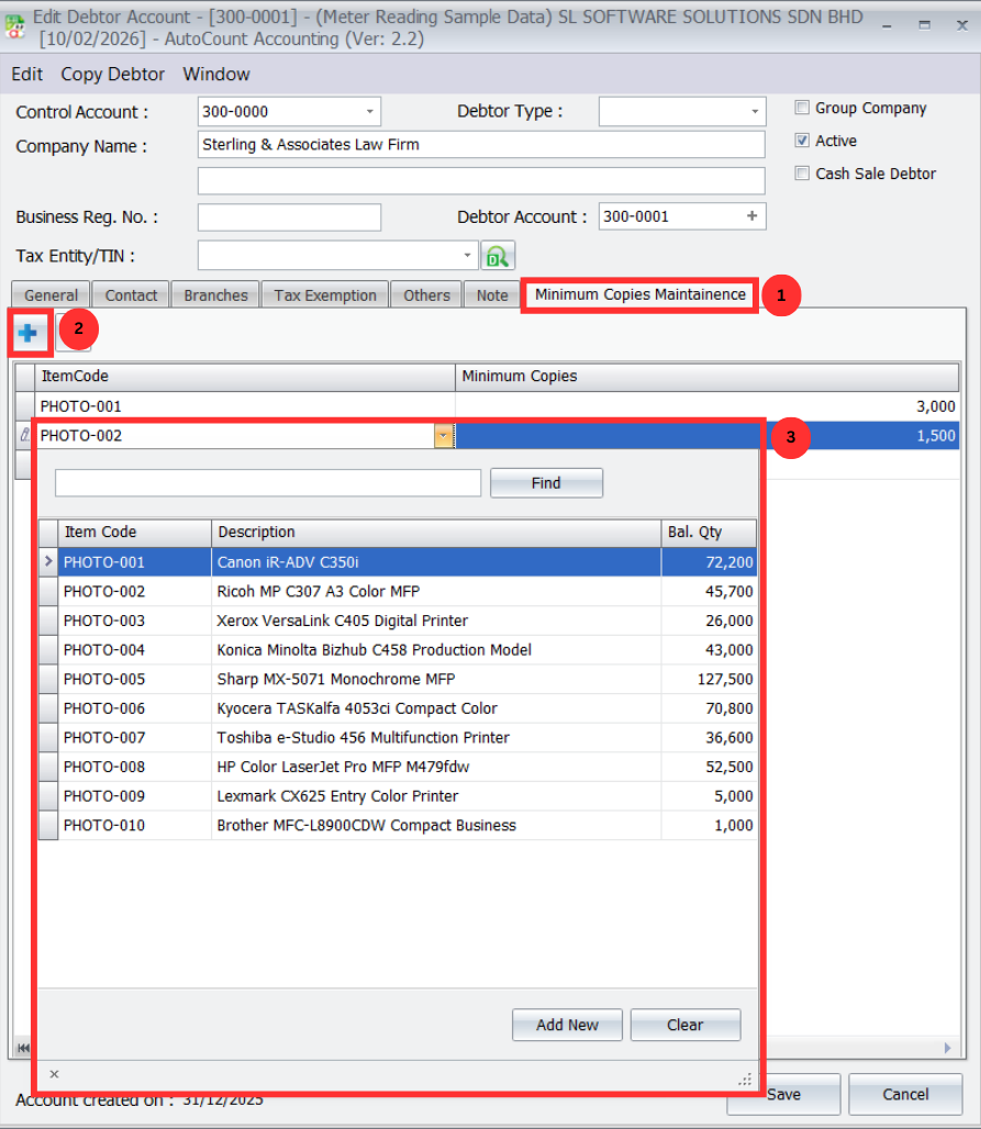 1. Set Minimum Copies in Debtor Maintenance