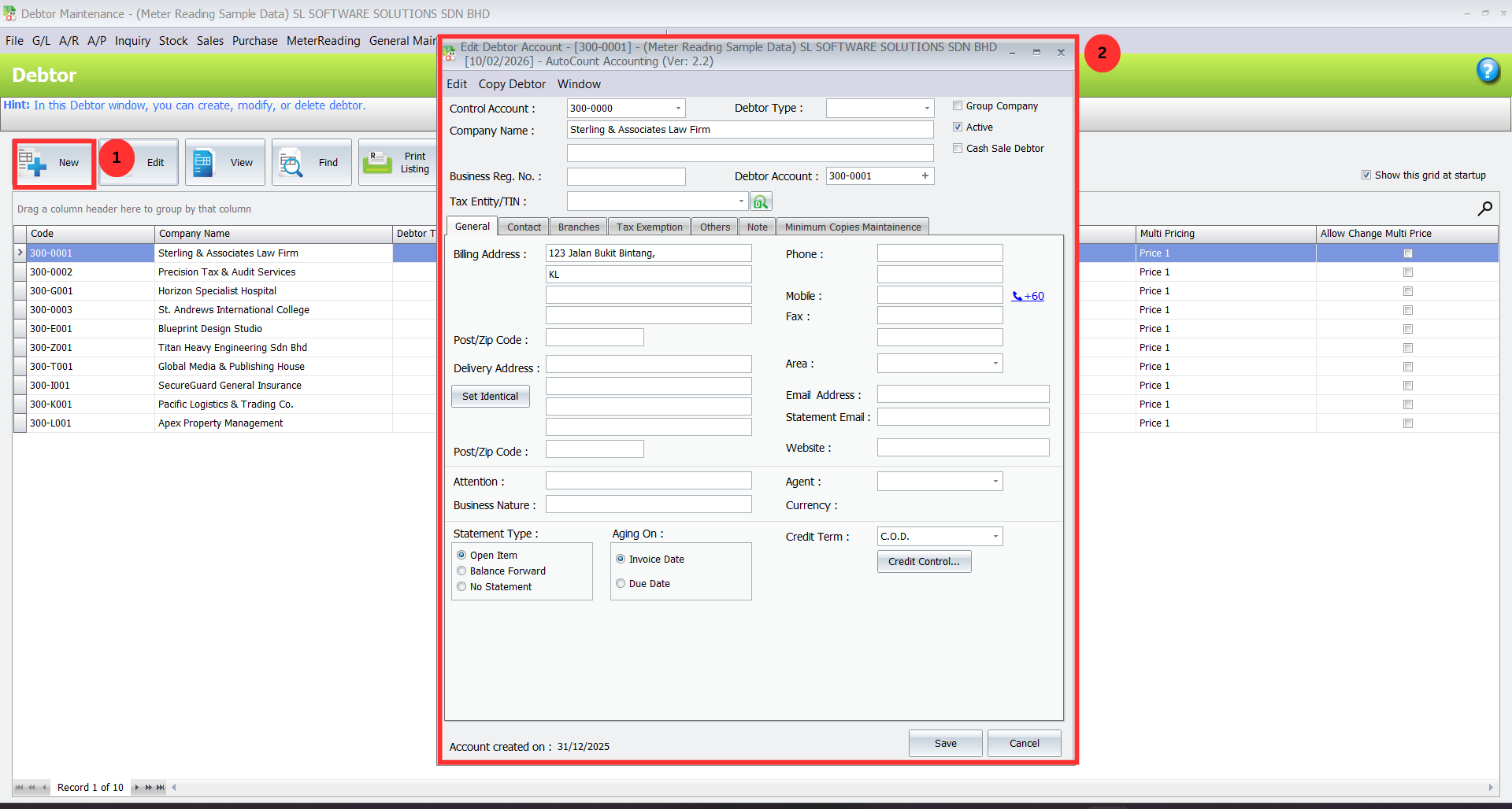 Go to A/R > Debtor Maintenance in AutoCount Accounting.