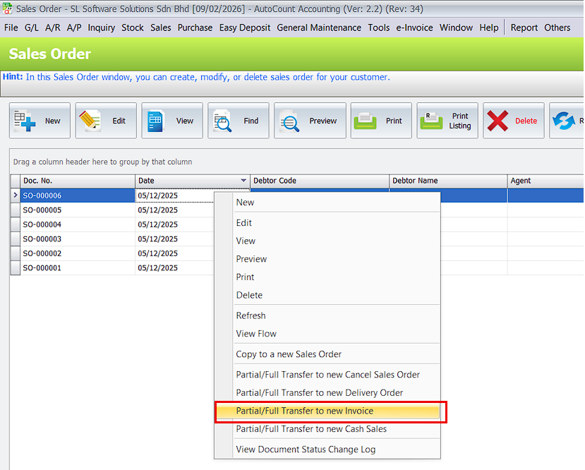 - AutoCount Progressive Billing