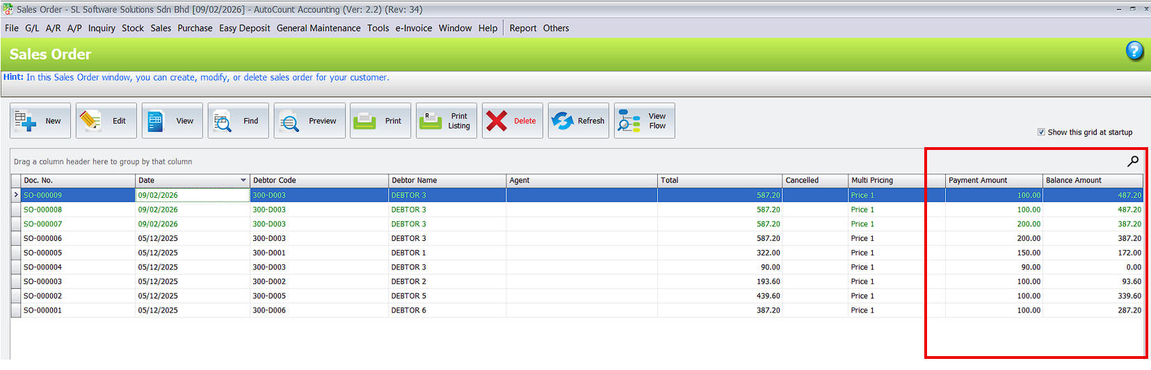 Save the Transaction: Once saved, the system will automatically display the paid amount and the remaining balance, making it easy to track payments in your main order list.
