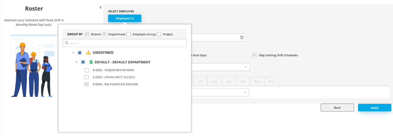 Click on Employee to select the employee(s) that you would like to create the schedule for.