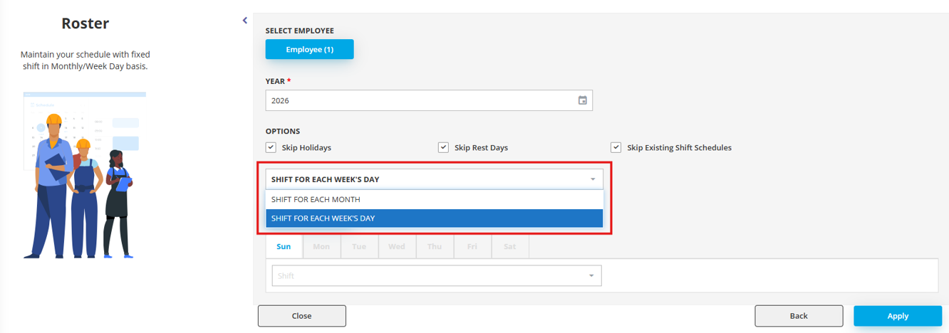 Select the Year and configure any optional settings specific to your scheduling needs.